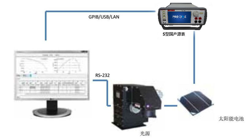 對太陽能電池進行電流-電壓(I-V)特性分析對推導有關其性能的重要參數至關重要,包括最大電流(Imax)和電壓(Vmax)、開路電壓(Voc)、短路電流(Isc)以及效率(η)。多組太陽能電池IV測試系統方案使用國際標準AAA級別太陽能模擬器取代傳統的鹵素燈,氙燈等光源,能夠完全模擬太空和地面的太陽能光譜,解決了實驗室測試太陽能電池入射光譜的匹配問題;而電池IV特性測試儀器采用普賽斯儀表高精度國產源表SMU,從100fA到10A超寬光電流和暗電流測量能力,能夠覆蓋絕大多數電池功率測試。結合精密多路切換開關和針對客戶電池電極形狀的定制化夾具,可實現最高60路電池單元的連續IV測試,大大提高了測試精度、重復性、效率。